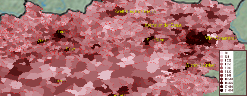 Wolfsbach ist Ortschaft in Niederösterreich, Österreich (Melk bezirk, Kirnberg an der Mank gemeinde) mit einer geschätzten Bevölkerung von 62 (am 01.01.2018). Das ist 5,7%% von der Kirnberg an der Mank gemeinde Bevölkerung; 0,080% von der Melk bezirk Bevölkerung; 0,0037% von Niederösterreich Bevölkerung und 0,00070% von der österreichischen Bevölkerung. Wenn die Bevölkerung mit gleich Zeitmaß als im [2017-2018] ändern würde (1,64% / Jahr), im 2025 wäre die Bevölkerung von Wolfsbach 69 wäre.