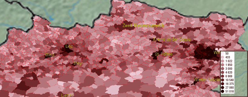 Arndorf ist Ortschaft in Niederösterreich, Österreich (Melk bezirk, Pöggstall gemeinde) mit einer geschätzten Bevölkerung von 40 (am 01.01.2018). Das ist 1,6%% von der Pöggstall gemeinde Bevölkerung; 0,052% von der Melk bezirk Bevölkerung; 0,0024% von Niederösterreich Bevölkerung und 0,00045% von der österreichischen Bevölkerung. Wenn die Bevölkerung mit gleich Zeitmaß als im [2017-2018] ändern würde (-2,44% / Jahr), im 2025 wäre die Bevölkerung von Arndorf 34 wäre.